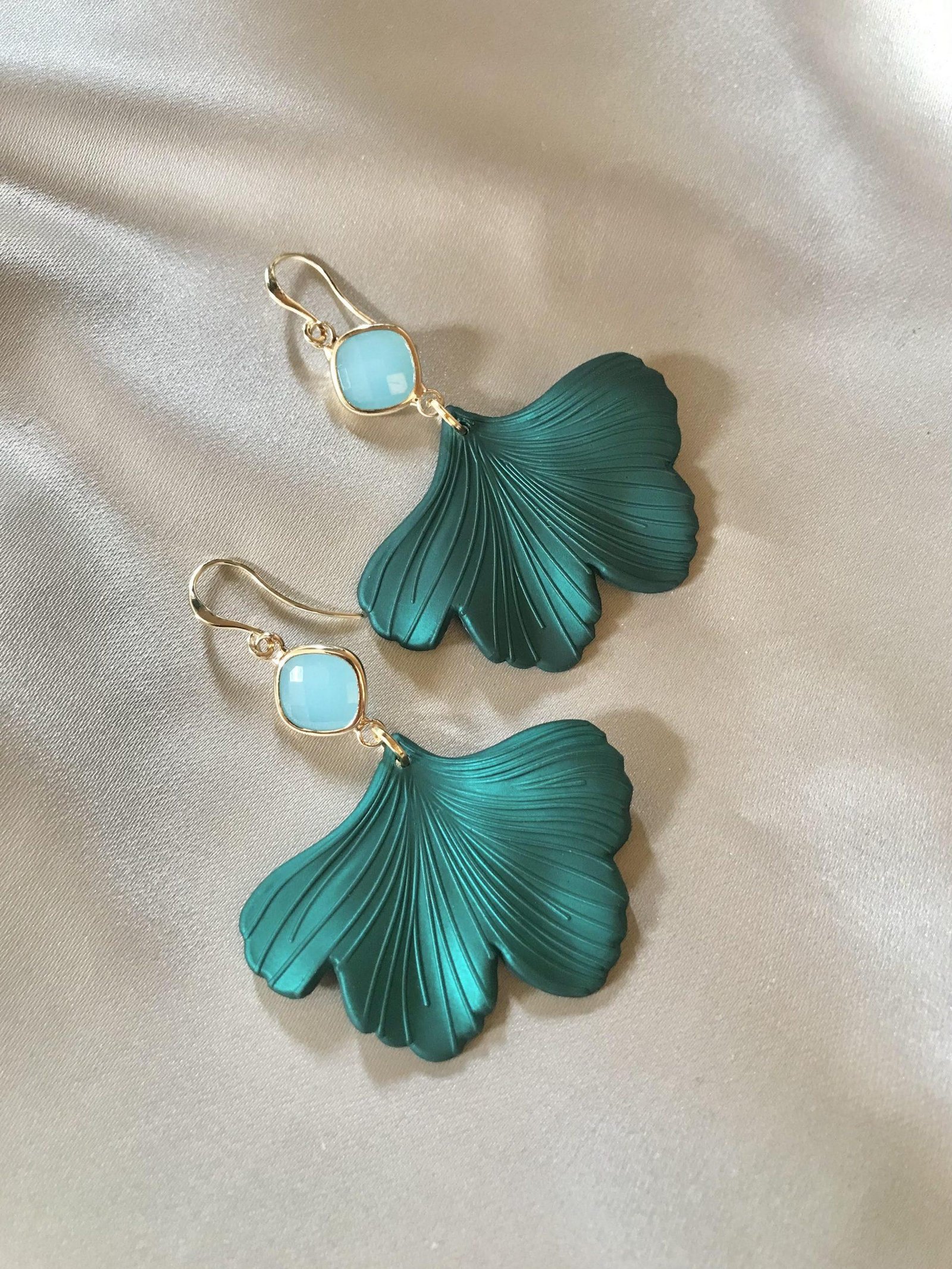 Vergulde oorhaakjes met aquablue jade en mooie lichtgewicht blaadjes die mooi het licht pakken!