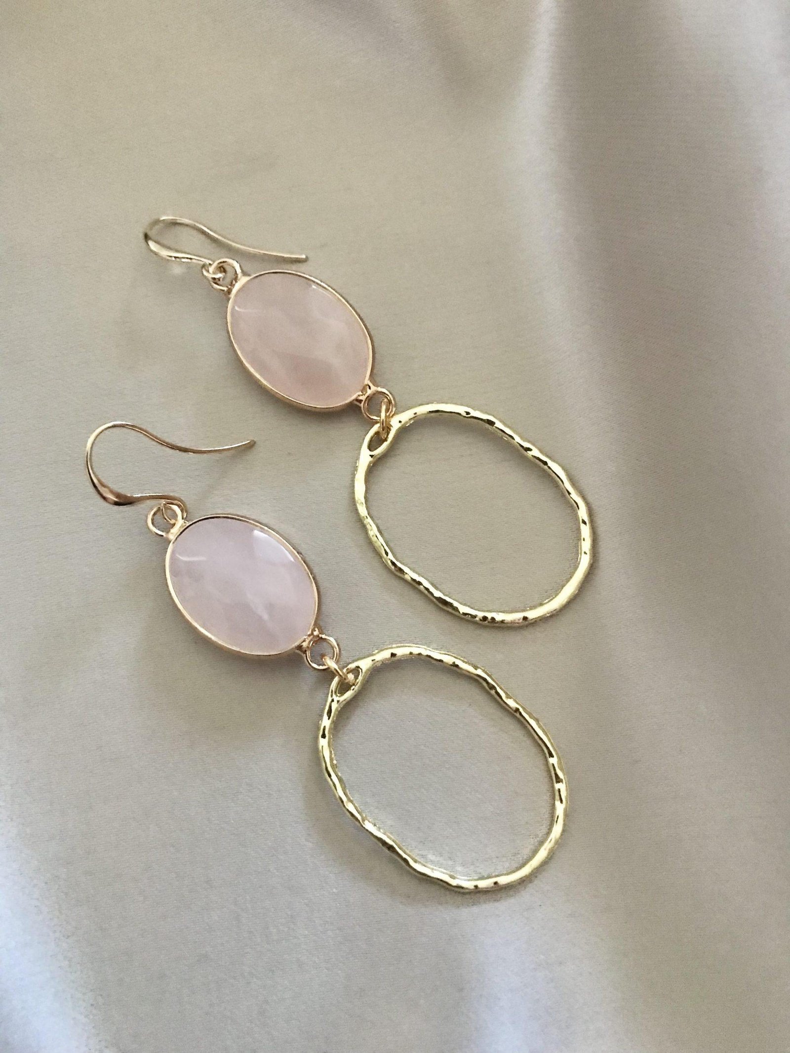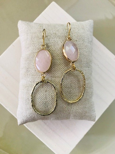 Vergulde oorhaakjes met Rooskwarts en onregelmatige open messing hangers die mooi van kleur blijven en heerlijk licht dragen.
