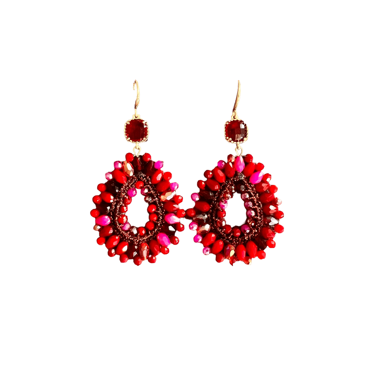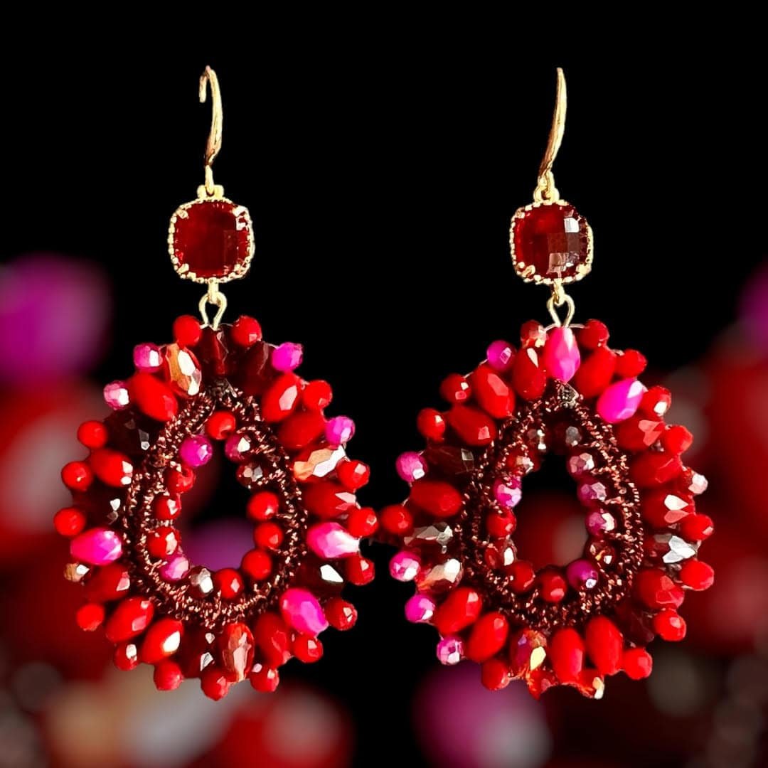Rode crystals van Folie à Jolie met goldplated rode glassteentjes en goldplated oorhaakjes.