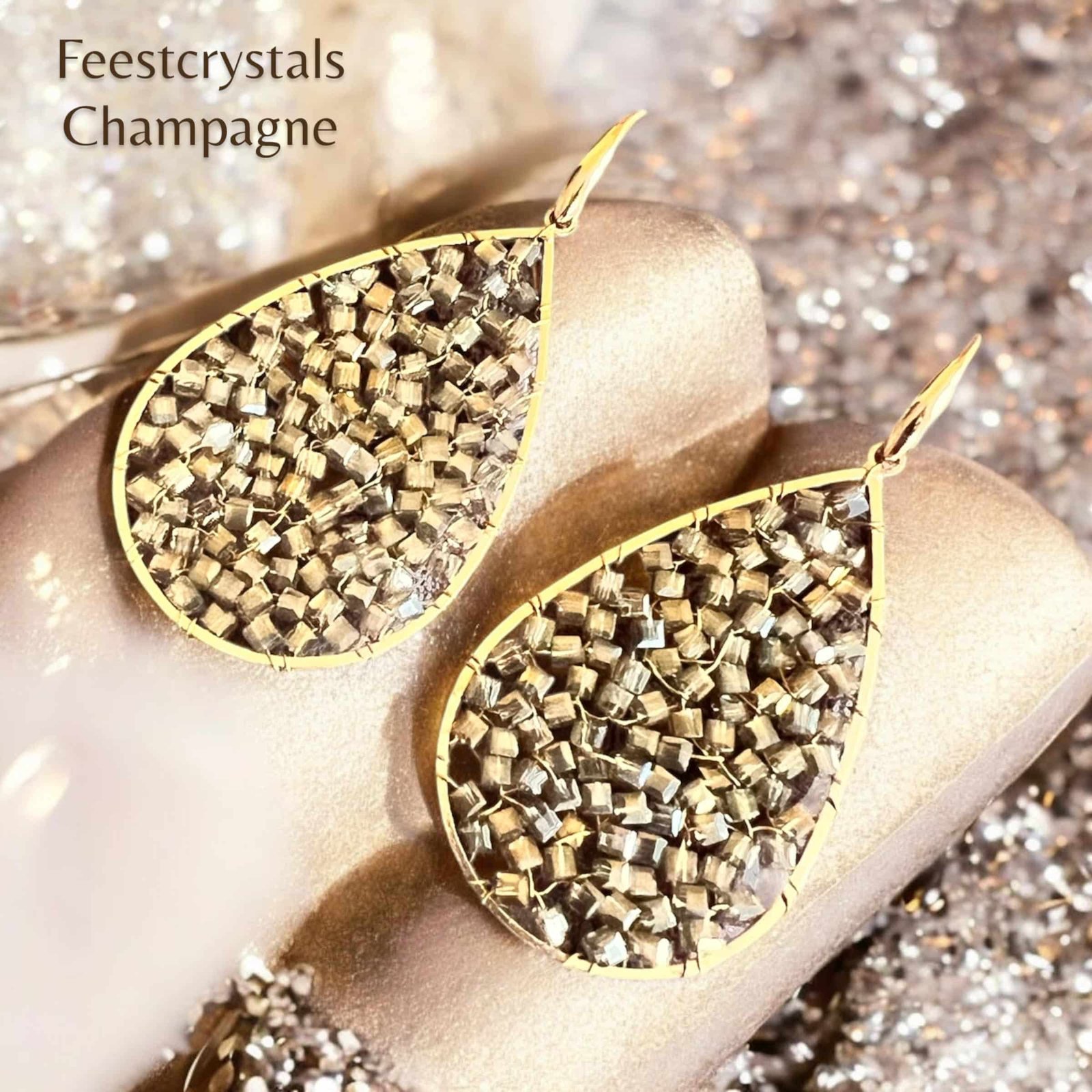 Goldplated oorhaakjes met leuke Champagnekleurige Crystals die heerlijk licht aan het oor dragen. Een zeer toegankelijke oorbel voor de feestdagen. Nu voor een speciale prijs: eur 32,95!
