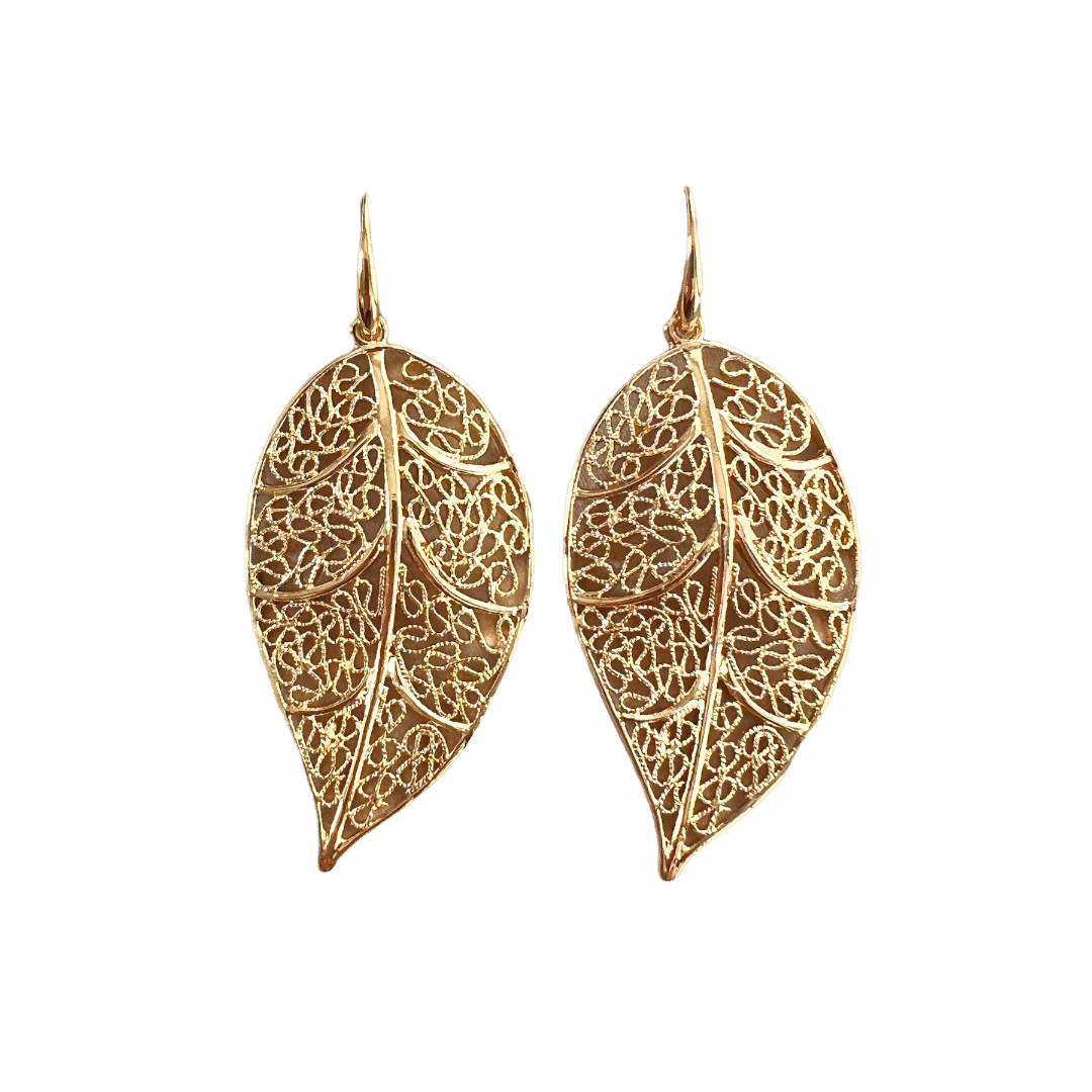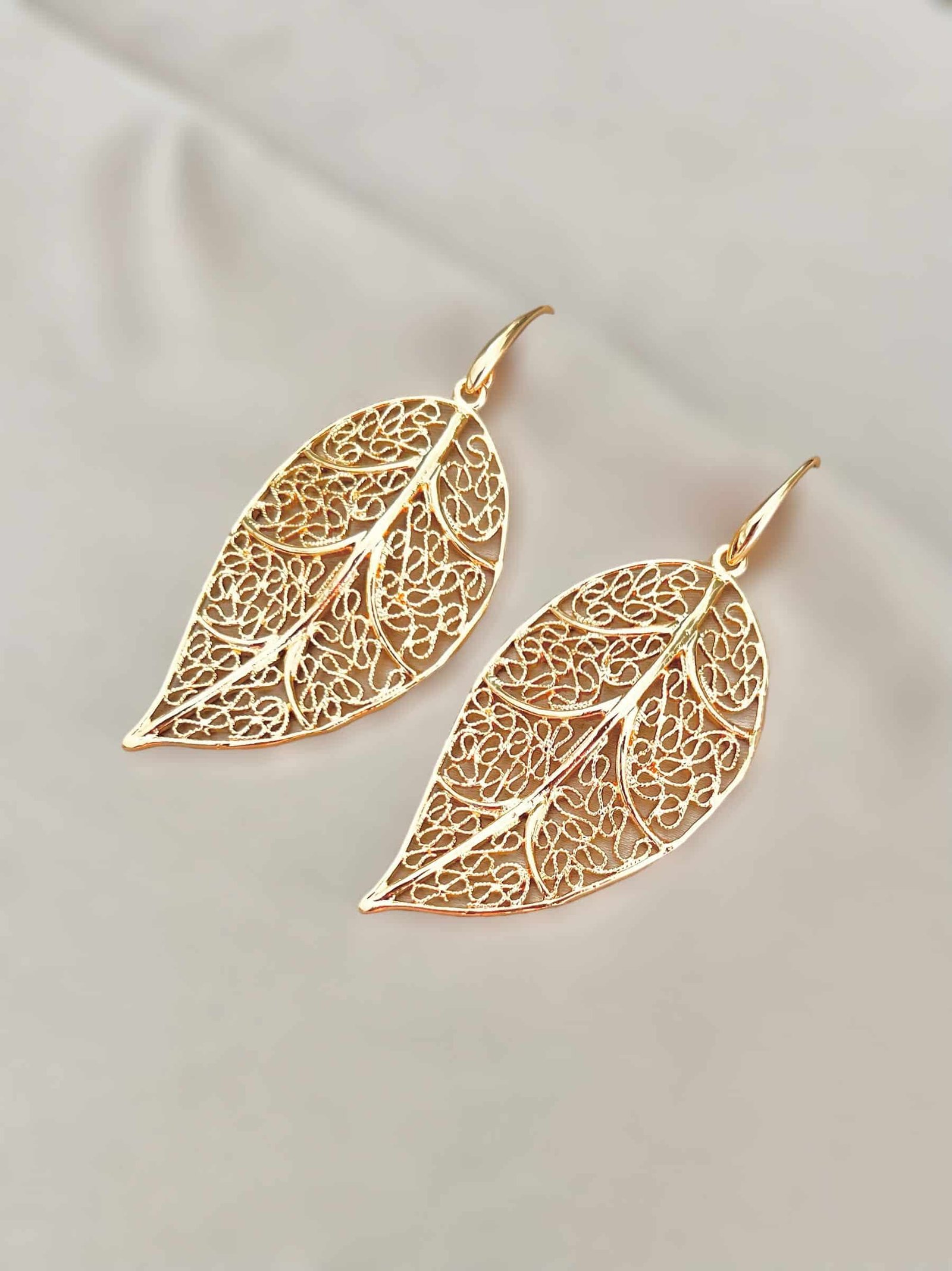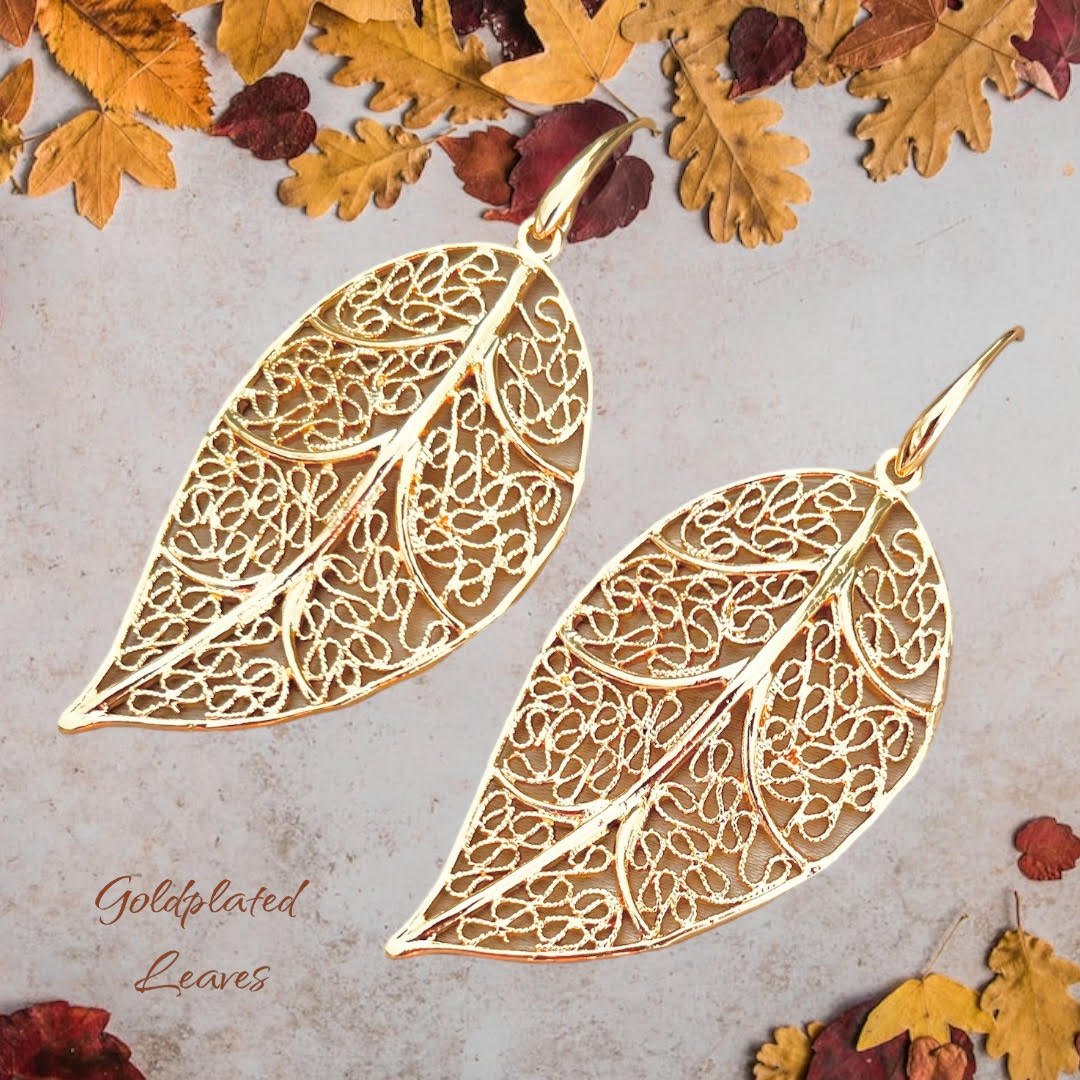 Leuke eyecatchers, deze asymmetrische opengewerkte blaadjes. Zowel de oorhaakjes als de hangers zijn goldplated.