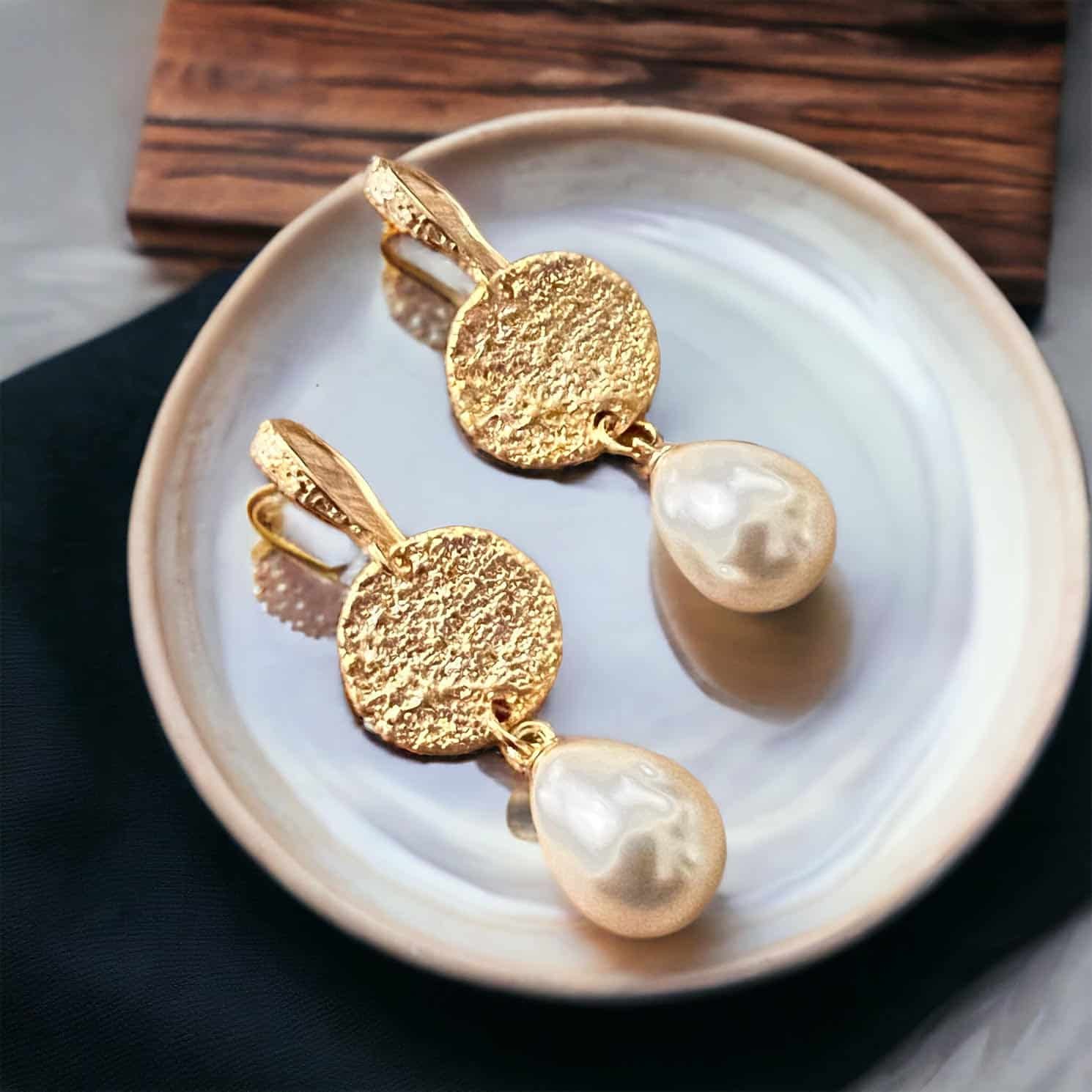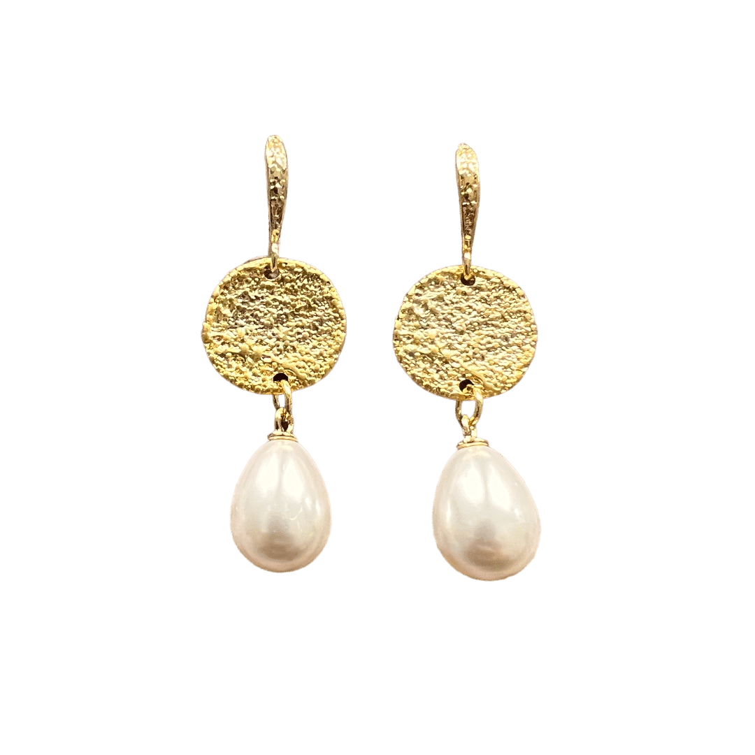 Goldplated oorhaakjes met goldplated muntjes en parels met een goldplated oogje. Een tijdloze klassieke set die heerlijk licht draagt!