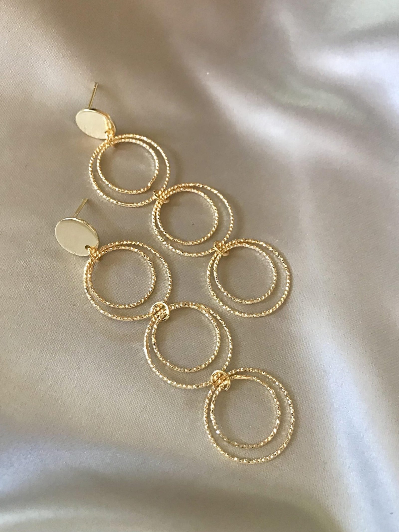 Goldplated oorstekers met goldplated dubbele ringen die speels in elkaar vallen. Echt zo’n paar dat bij elke outfit past, mooi in het licht schittert en jij dus ook! Statement oorbellen die toch delicaat ogen en heerlijk licht dragen.