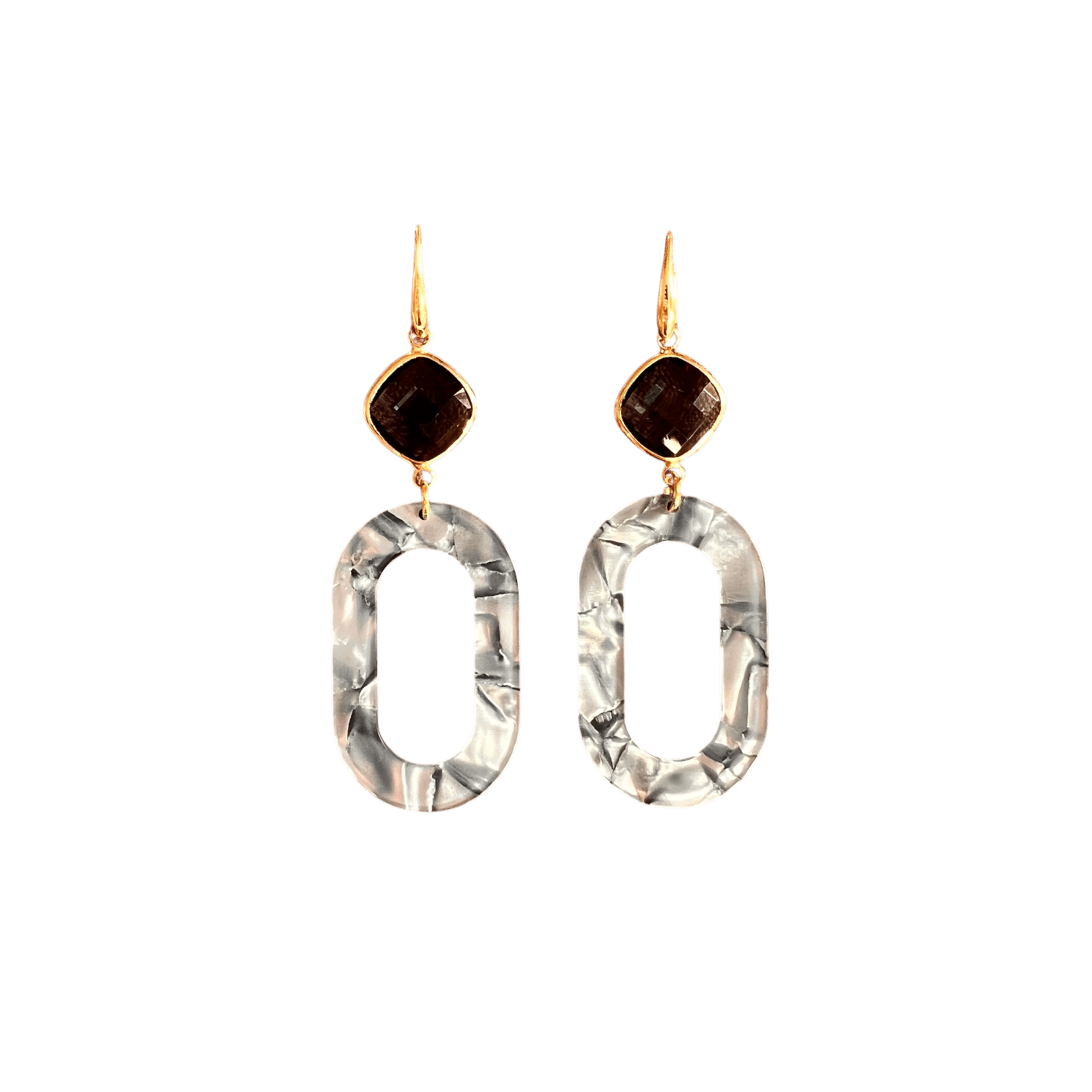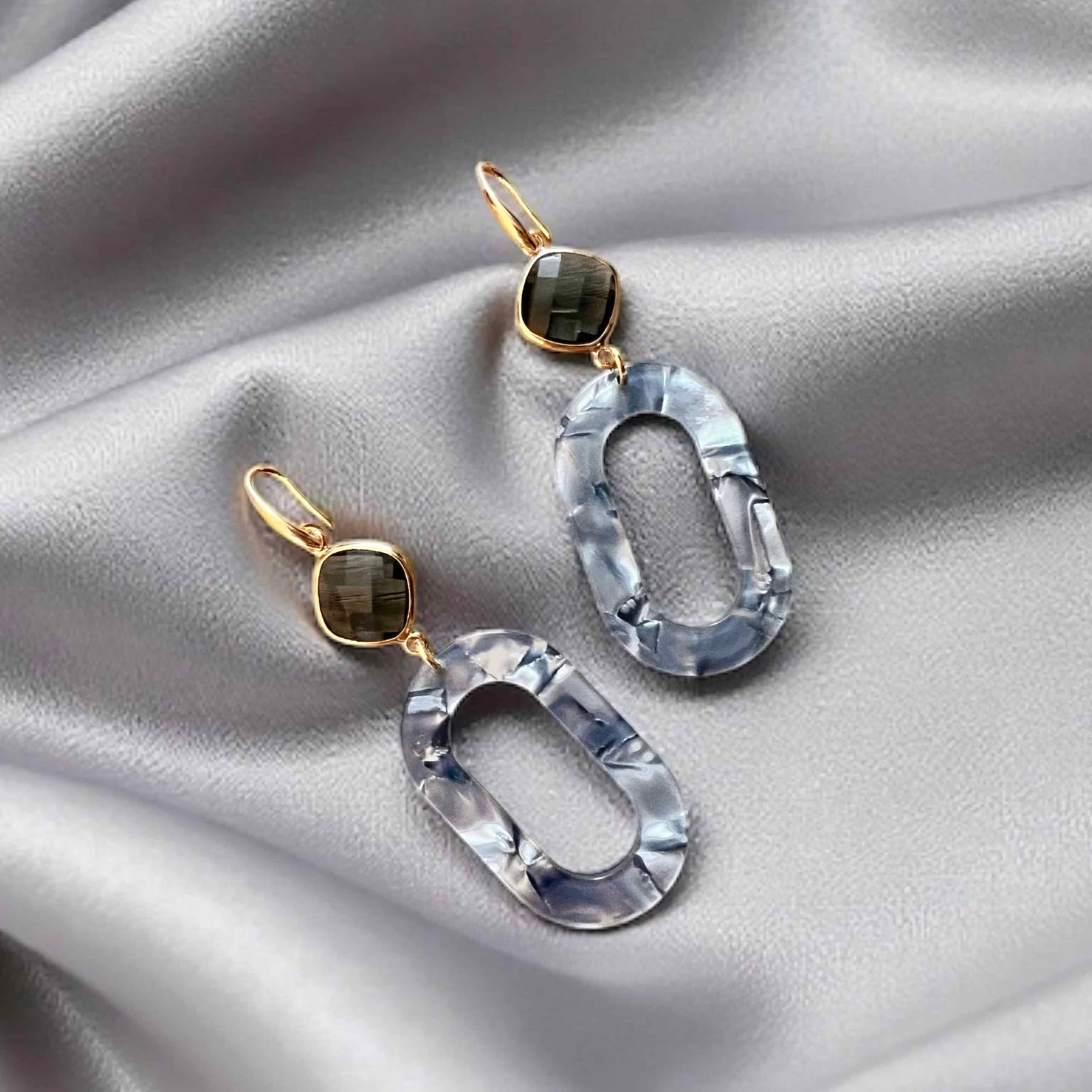 Elegant, tijdloos en superlicht om te dragen — deze oorbellen combineren een glanzende grijze glassteen met subtiele gemêleerde grijs-tinten in de hanger.