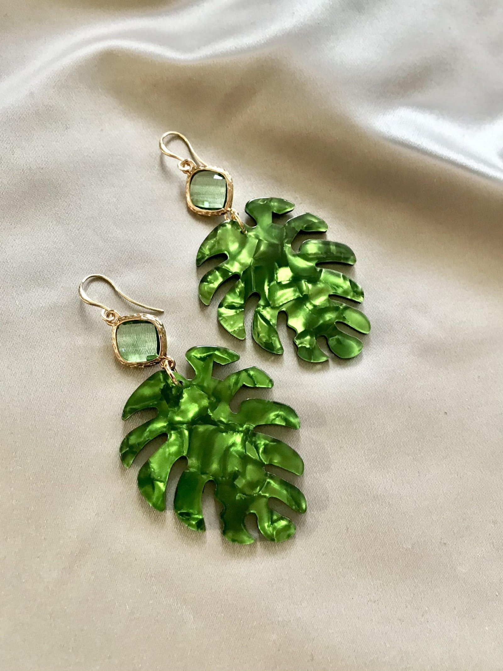Vergulde oorhaakjes met mooie groene glassteentjes en gemêleerde groene leaves die mooi het licht oppakken!