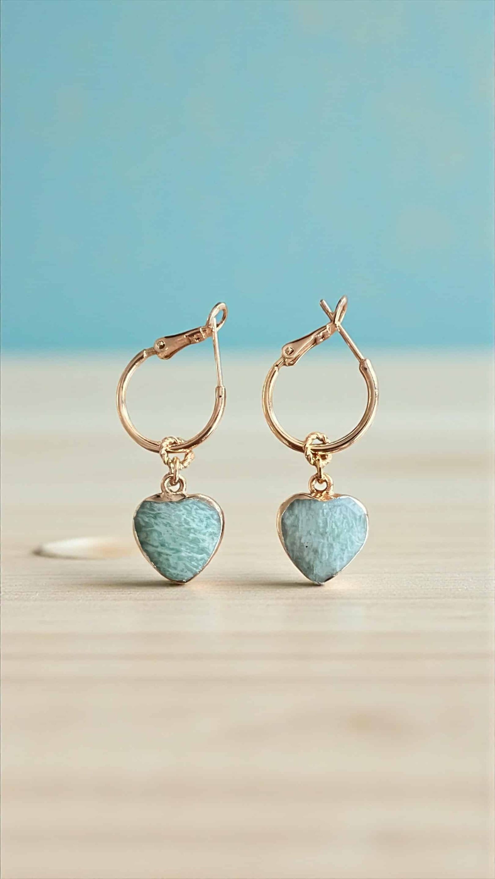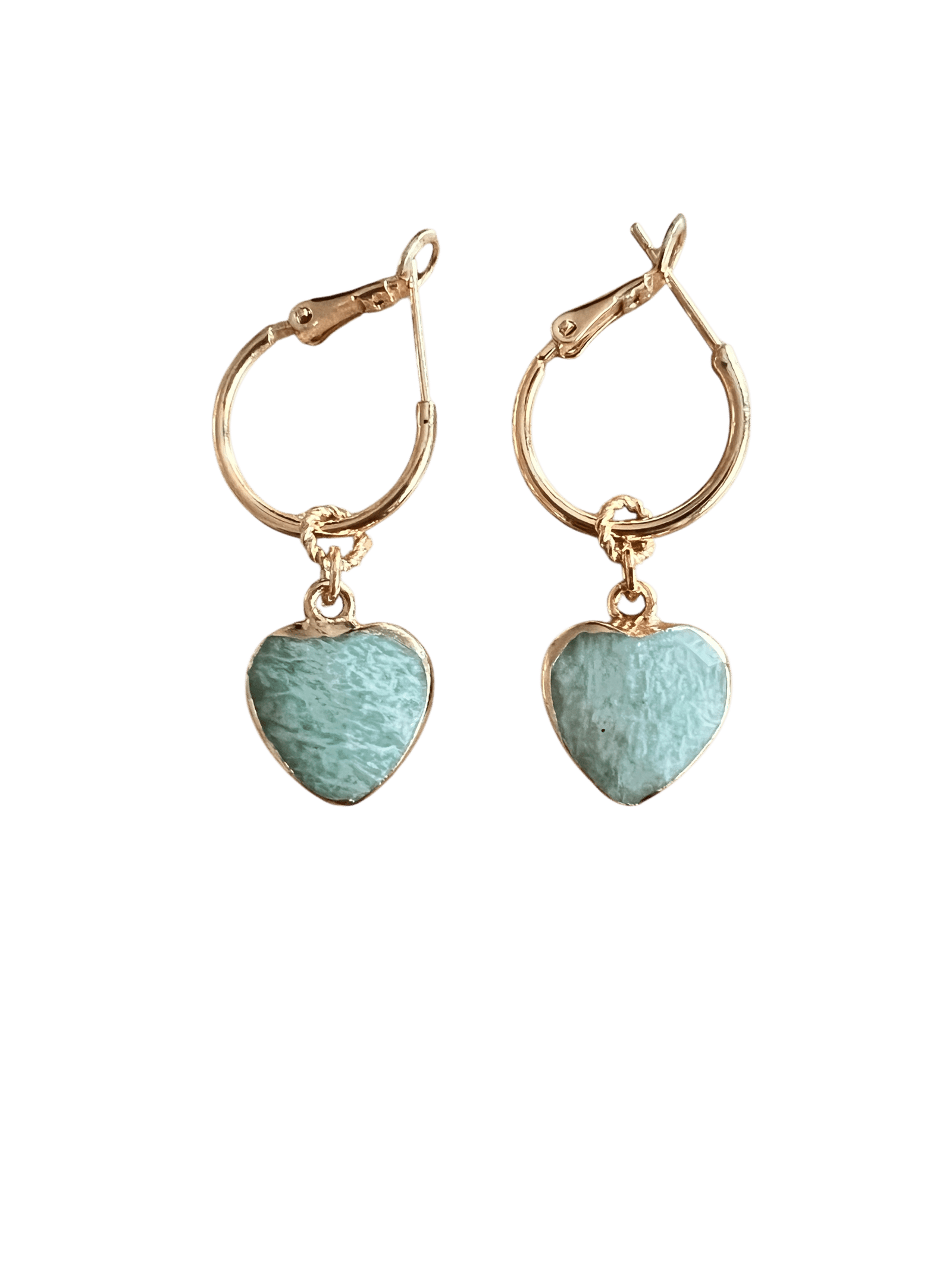 Wat een dotjes! Goldplated oorringen met Amazoniet hartjes. Dragen heerlijk licht en de oorringen zijn ook los te dragen.