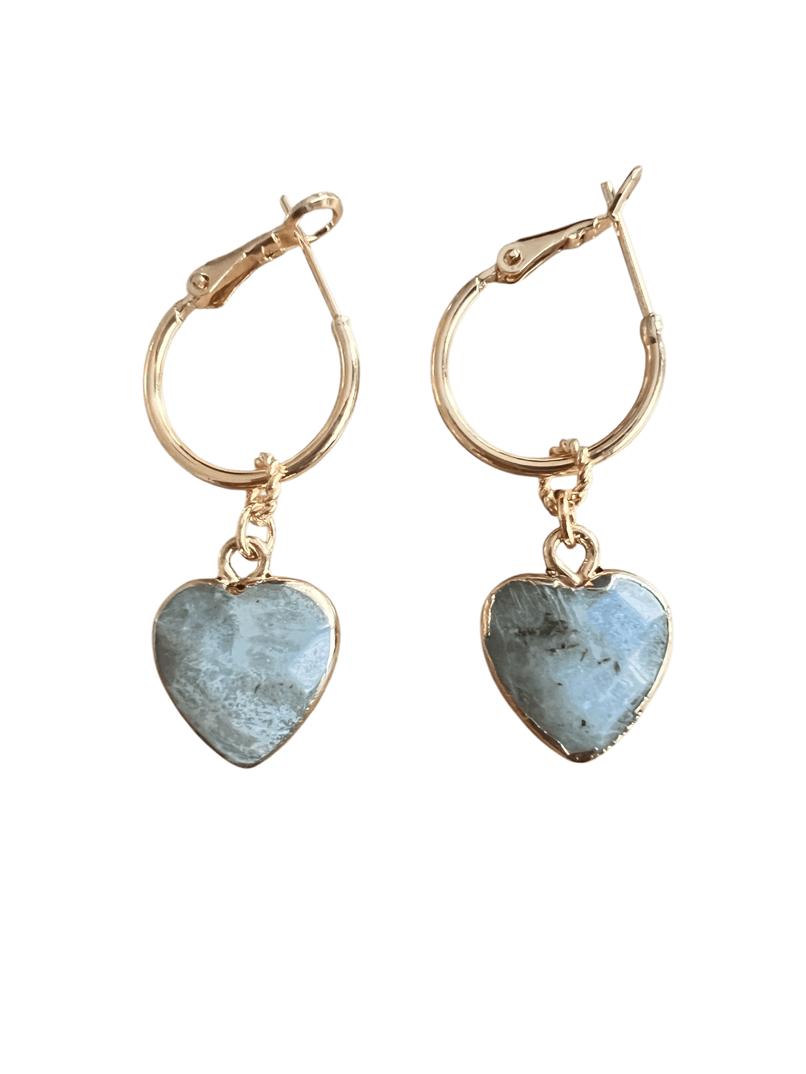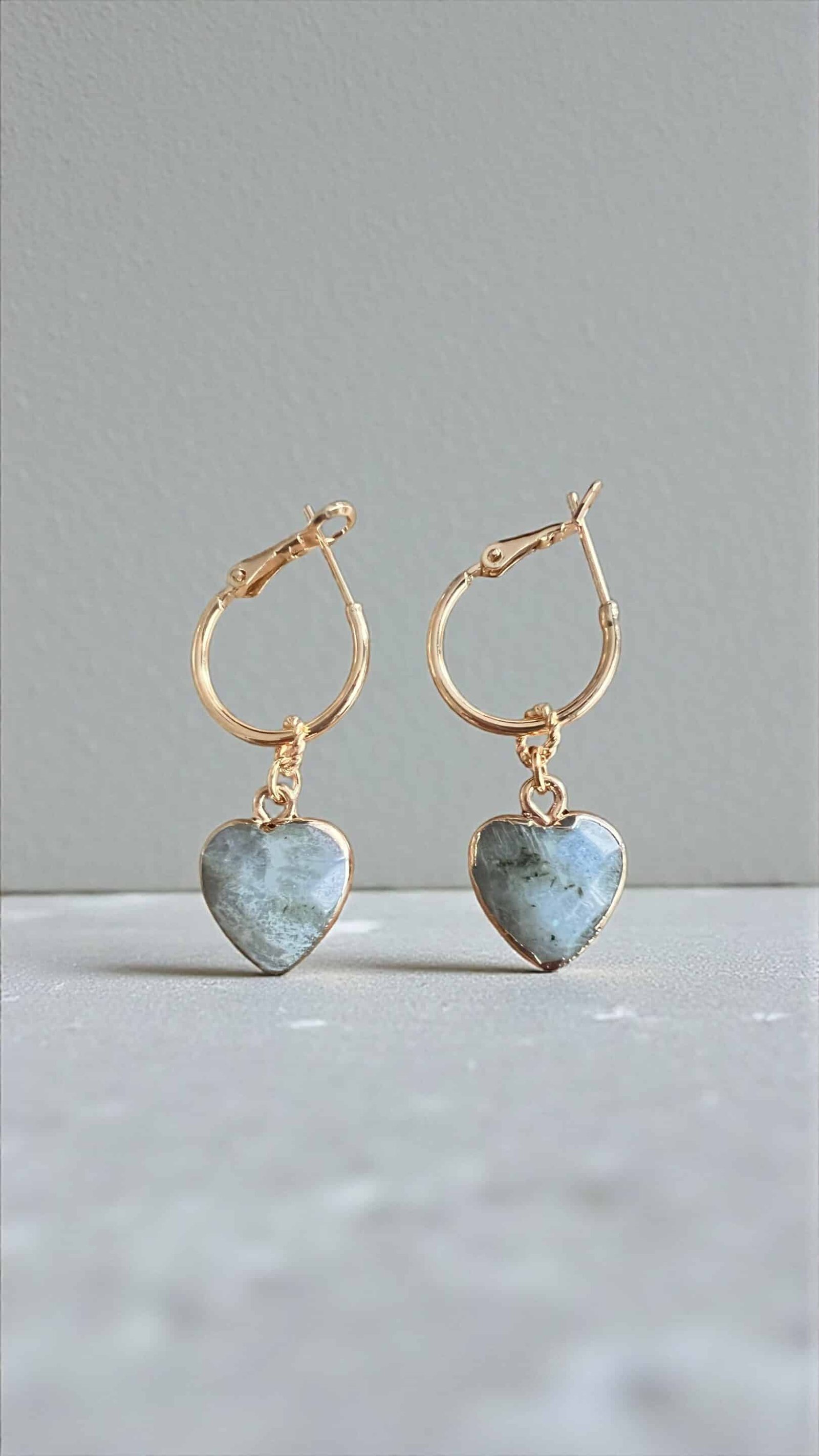 Wat een dotjes! Goldplated oorringen met Labradoriet hartjes. Dragen heerlijk licht en de oorringen zijn ook los te dragen.