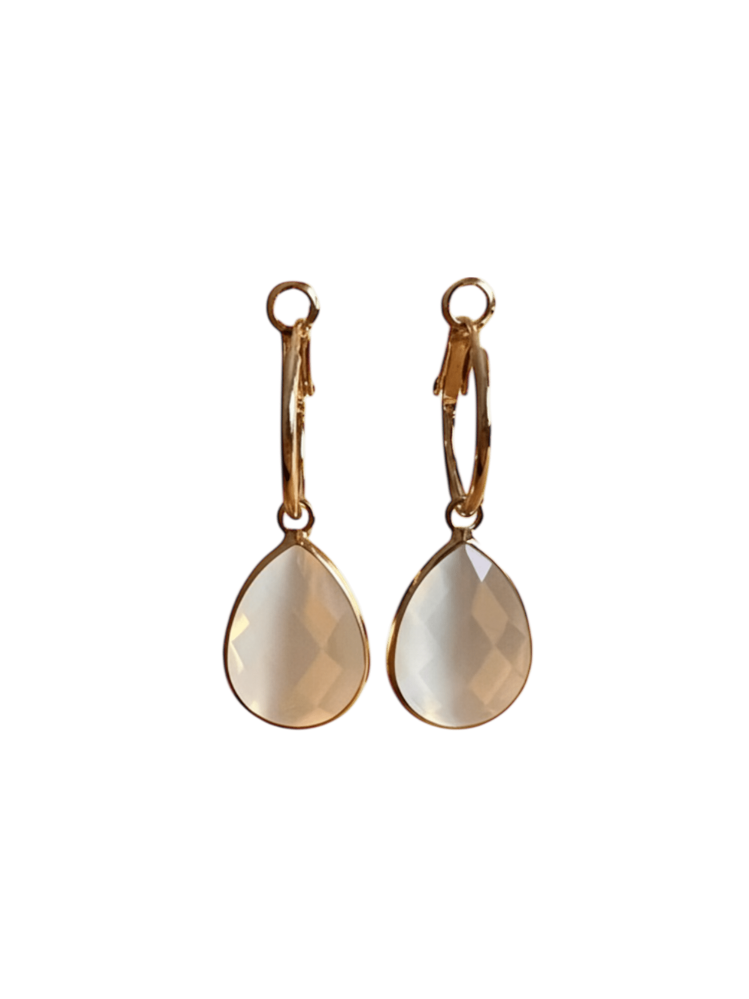Deze goldplated oorringen (ook los te dragen) met vergulde witte catseye drops stralen pure elegantie uit. De zachte winterwitte tint van de catseye geeft een frisse, luxe uitstraling die prachtig combineert met het warme goud. Tijdloos en stijlvol, perfect voor het hele jaar door!