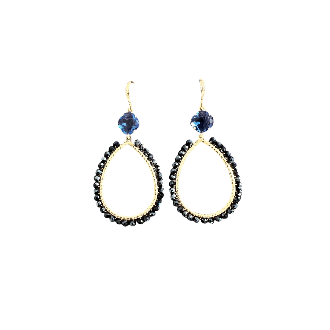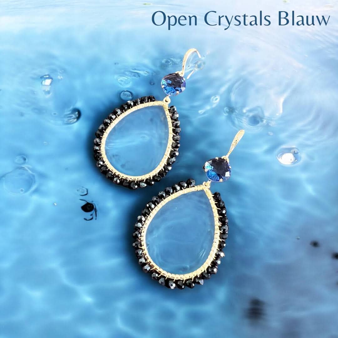 Mooie kwaliteit goldplated oorhaakjes met jeansblauwe glassteentjes en leuke open crystals in metallic blue.
