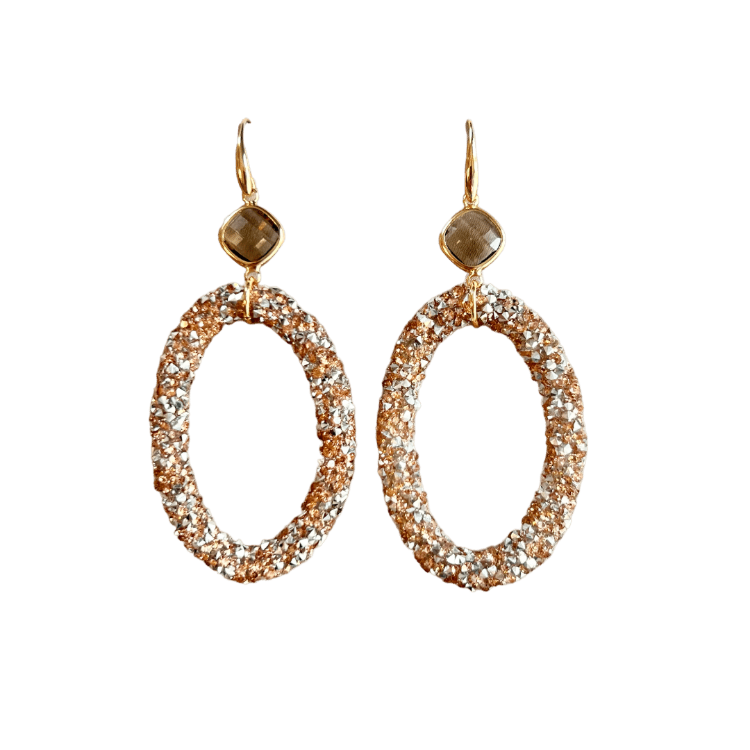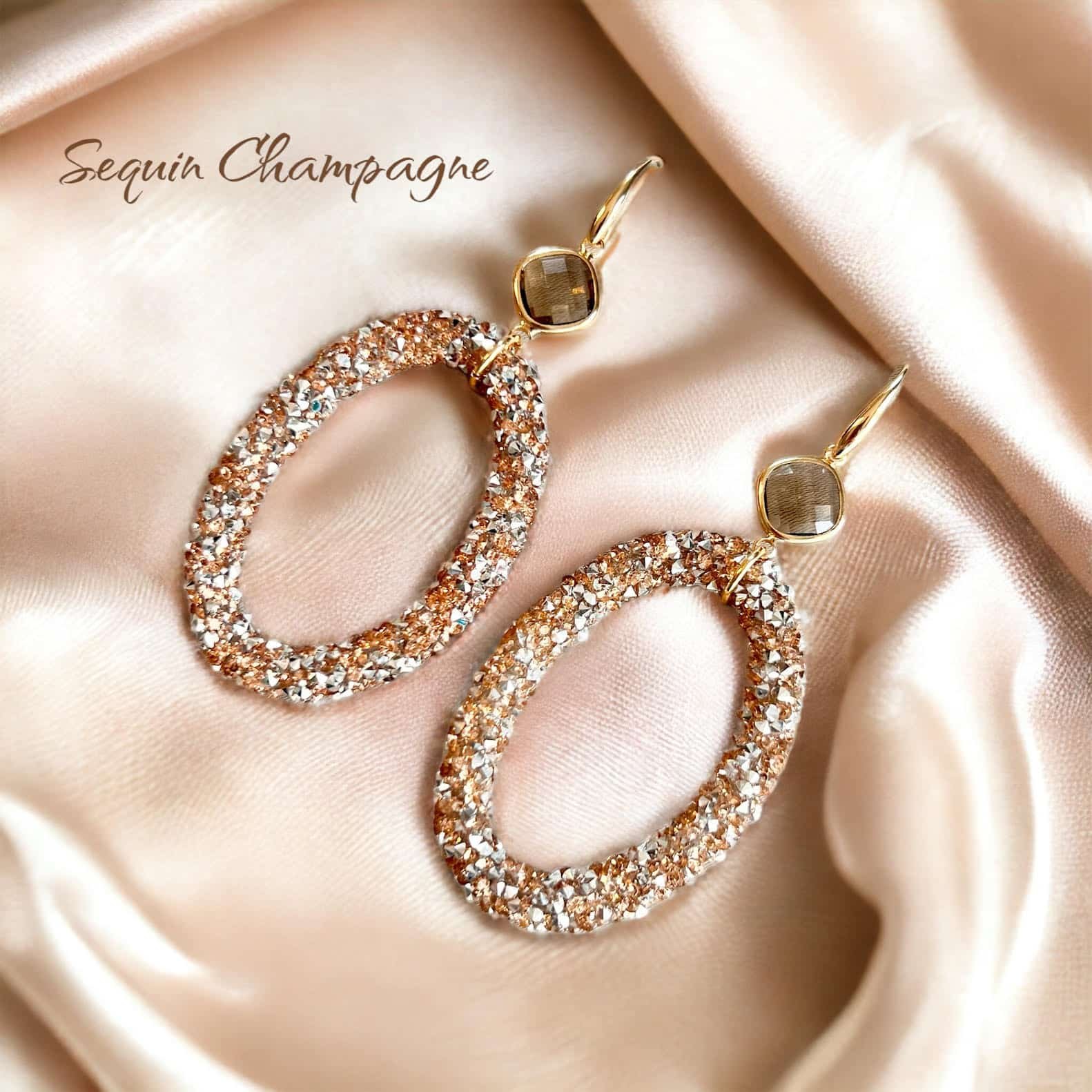 Goldplated oorhaakjes met facetgeslepen coffee glassteentjes en leuke Sequin hangers in de kleur Champagne. Ze dragen heerlijk licht aan het oor.