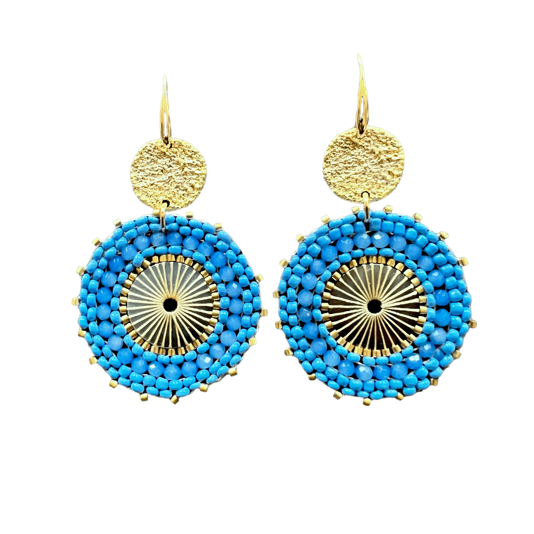 Nieuwe Solar hangers in de waanzinnige kleur Sky Blue! Zo leuk te combineren met jeans en een witte blouse of andere kleuren blauw voor een mooi contrast. Gecombineerd met mooie kwaliteit goldplated muntjes en goldplated oorhaakjes.
