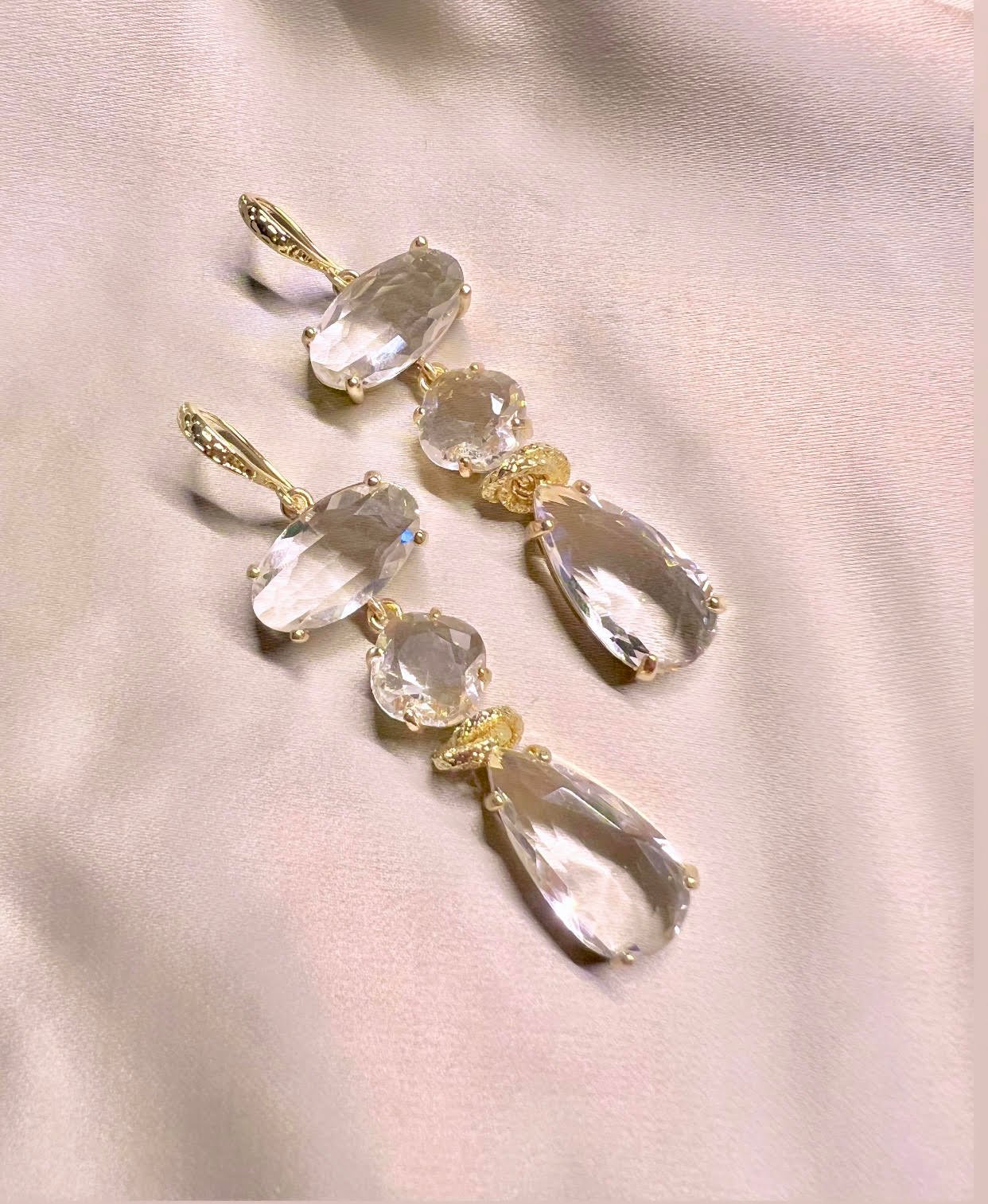 Een trio van goldplated facetgeslepen glasstenen, afgewerkt met goldplated materialen. Deze set past overal bij!