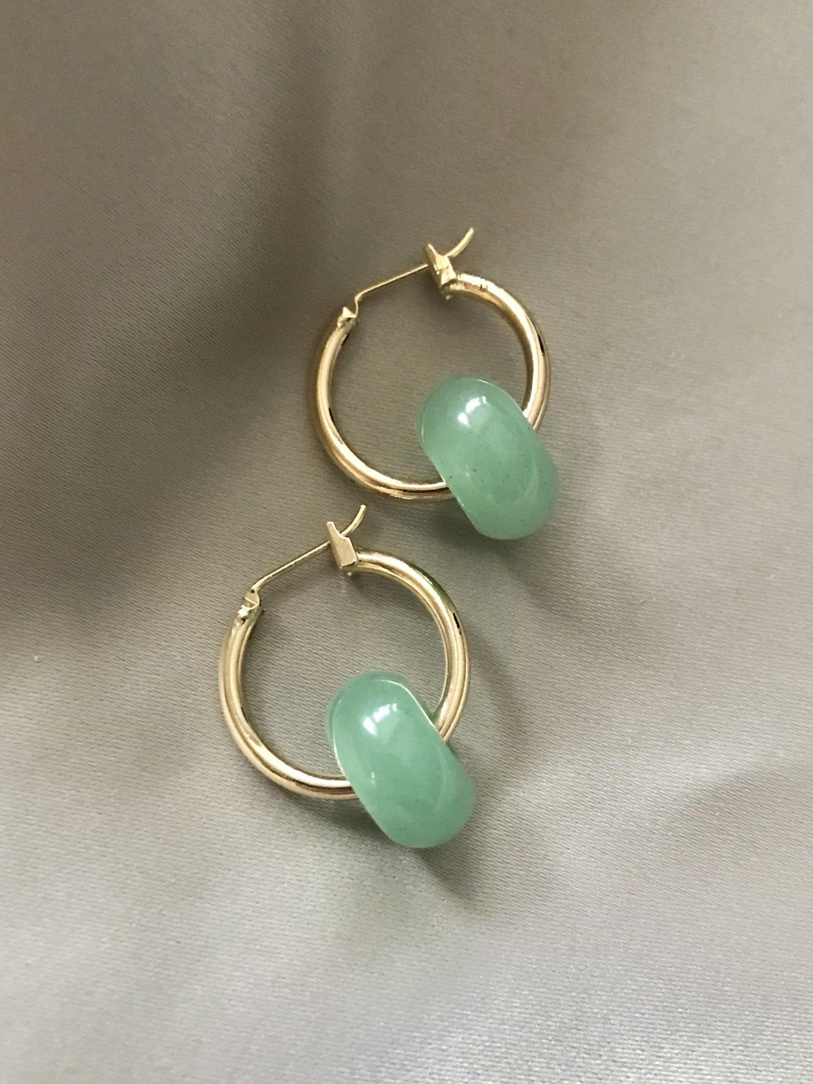 Vergulde oorringen (doorsnede 2 cm) met Aventurijn natuursteen.