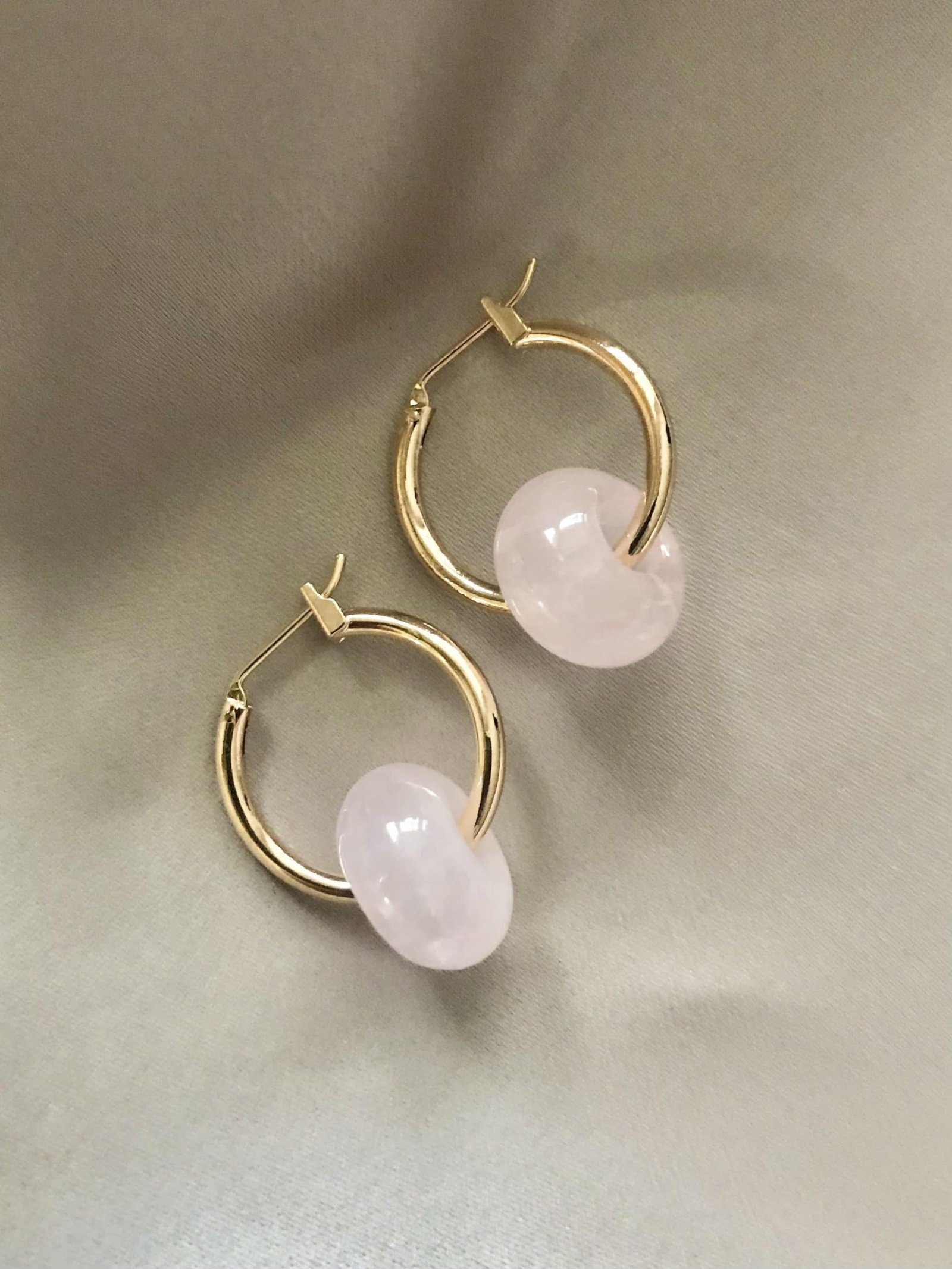Vergulde oorringen (doorsnede 2 cm) met Rooskwarts natuursteen.