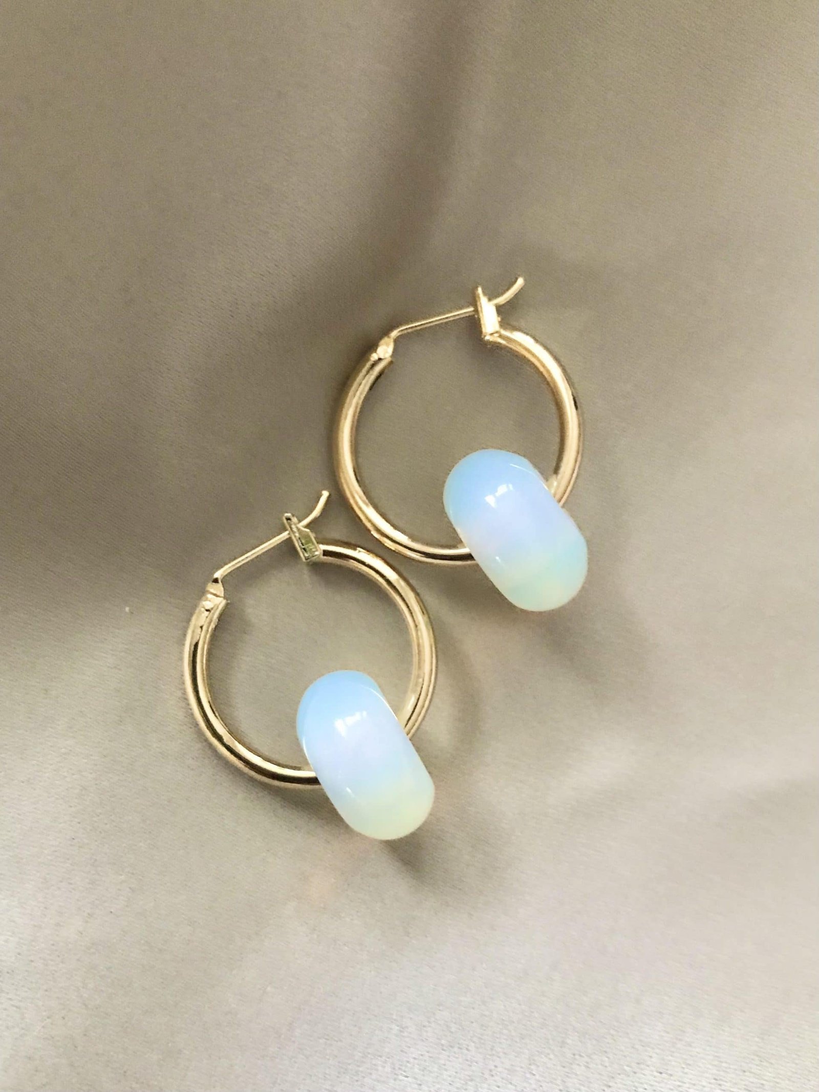 Vergulde oorringen (doorsnede 2 cm) met Opaliet natuursteen.